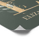 Letter E monogram floral. Letter E in golden brown texture accented with green watercolor compound leaves, flower blossoms and gold dust. Personalised with name in matching font.