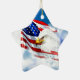 The image of an eagle's proud head is superimposed upon the American Flag waving in the sky. This patriotic design is an inspiring image for all those who love the USA and its symbols of freedom.