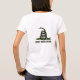Two designs - front and back. Conservative Political Libertarian Tea Party shirt. American eagle with Stars and Stripes on pocket area of shirt with artist rendering of Gadsden Flag "Don't Tread On Me" snake and text on back.