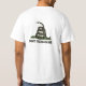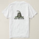Conservative Political Libertarian Tea Party shirt. American eagle with Stars and Stripes on the pocket area of shirt with artist rendering of Gadsden Flag. "Dont Tread On Me" snake and text on the shirt's back.