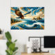 A painting depicting an eagle soaring gracefully over a body of water, captured in a realistic and detailed style with elements of oil painting, gold, and marble. symbolising strength, patriotism, and freedom.