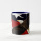 Eagle In Flight Over American Flag Two-Tone Coffee Mug