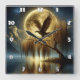 Eagle Majestically Perched on Tree Branch at Night Square Wall Clock