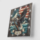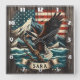 Eagle on Branch With Mountains and Flag Square Wall Clock