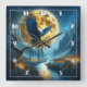 Eagle on Tree Branch Under Full Moonlight Square Wall Clock