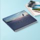 Funeral guestbook with a photo of an eagle soaring over mist-cloaked mountains at sunrise. Personalize with your loved one's name printed in gold foil.