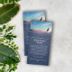 Beautiful thank you card for a memorial service featuring a photo of a backlit eagle soaring over a mountain landscape at sunrise with clouds adorning a pale blue sky. Add the thank you wording against a navy blue background.