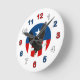This clock is decorated with an American Bald Eagle, Lone Star Flag and a red, white, and blue face. A bright and patriotic kitchen clock. A wonderful gift idea.