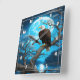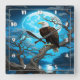 Eagle Perched on a Branch Under a Full Moon Square Wall Clock