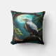Eagle Perched on Branch Under Full Moon Night Cushion