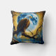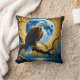 Eagle Perched on Branch Under Full Moonlight Cushion