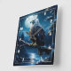 Eagle Perched on Branch Under Full Moonlight Square Wall Clock