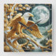Eagle Perched on Branch Under Full Moonlight Square Wall Clock