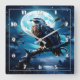 Eagle Perched on Branch Under Moonlight Square Wall Clock