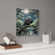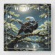 Eagle Perched on Branch Under Moonlit Sky Square Wall Clock