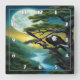 Eagle Perched on Tree Branch Under Full Moon Square Wall Clock