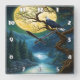 Eagle Perched Under Full Moon Over River Square Wall Clock