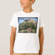 100% cotton so perfect for summer, It is a nicely designed t-shirt, the fabric is soft and the seams finished well, the body of the t shirt has no side seams. I bought a medium size for my two grandsons, aged 9 and 8 it will be slightly big on them but I would rather that than too small