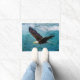 Welcome guests with strength and inspiration with this powerful doormat featuring a majestic bald eagle soaring above a stormy sea. The swirling ocean below, painted in bold abstract strokes of navy, slate, and deep grey, represents life’s chaos and distractions. But the eagle—detailed in crisp white, warm brown, and gold—glides above it all with confidence and grace. His piercing eyes and wide wingspan remind us to rise above the noise and walk in purpose. A striking entryway statement, this doormat is perfect for homes grounded in faith, resilience, and bold style.