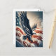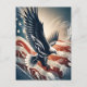 A majestic bald eagle soars above a stylised American flag, symbolising freedom and patriotism.