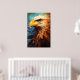 “Eagle Spirit” is a striking digital artwork that captures the essence of the majestic bald eagle. The artwork showcases the eagle in profile, its eyes focused, embodying the spirit of freedom and strength. The eagle’s feathers blend seamlessly into the vibrant background, a harmonious fusion of blue and orange hues, symbolising the sky at dusk.