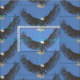 Eagle swooping inked drawing art fabric in brown, white, yellow and your own choice of background colour currently blue. © Original pen drawing and graphic art by Sarah Trett. www.sarahtrett.com