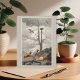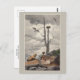 This postcard features - Eagle's Nest, a landscape painting from 1912 by Winslow Homer (1836-1910). It depicts two men in a birch bark canoe observing a pair of eagles circling their nest high in a tree.