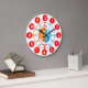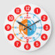 Colourful kids graphic wall clock colour coded to help assist your child to read a clock. This colourful teaching aid includes minutes and hours and past and to making child's play of telling the time. Designed exclusively by Sarah Trett. A great addition to a child's bedroom who is just learning to read a clock face.
