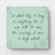 This funny plaque features a pale green background and the text, "I don't like to brag or anything, but I can still fit into the earrings I wore in high school."