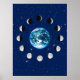 Pictures oster of the phases of the moon, surrounding a blue-swirled Earth, on a starry background