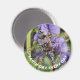 Make Earth Day every day! Round, decorative magnet for home or office featuring the photo image of a colourful Blue-Eyed Darner dragonfly resting on purple flowers. Select your magnet size.