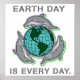 This is a striking design featuring three dolphins circling our Planet Earth. The shirt says "Earth Day is Every Day."