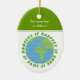 Earth Day custom ornament featuring the planet earth and in and around it the phrases love, protect, respect, save it.