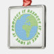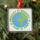 Earth Day custom ornament featuring the planet earth and in and around it the phrases love, protect, respect, save it.