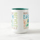 Earth day mug. Words to live and save our planet by - sustainable, recycle, go green, respect, reduce, eco, planet. Created by © Lesruba Designs.