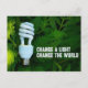 Earth Day postcards with a compact fluorescent lightbulb and the phrase "Change a light, change the world". Share your message to protect the Earth with our Think Green all occasion postcards & greeting cards!