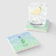 The coasters are gorgeous, a quality feel and heavy weight. They look like a precious archeological find. A rustic stone juxtaposed with a modern floral black and white print. I like the way the print goes slightly imperfect on the cut stone edges giving them a kind-of natural beauty.