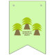 This awesome bunting features a graphic image of three trees that resemble palm trees with large green leafy fronds and a sturdy brown tree trunk. There is a message in brown text to look like soil under the trees. The message says Happy Earth Day.