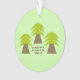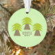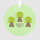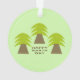 This awesome acrylic ornament features a graphic image of three trees that resemble palm trees with large green leafy fronds and a sturdy brown tree trunk. There is a message in brown text to look like soil under the trees. The message says Happy Earth Day.
