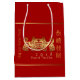 Customisable medium gift bag with golden papercut of two dogs and stylised earth between them on red background: 2018 is Earth year of the Dog. Available in large size too. Matching greeting card, invitation and more... . Perfect for Chinese New Year of The Dog 2018 or Birthday (people born in dog year). -------- "The Dog (狗) is one of the 12-year cycle of animals which appear in the Chinese zodiac related to the Chinese calendar. The Year of the Dog is associated with the Earthly Branch symbol 戌. The character 狗 refers to the actual animal while 戌 refers to the zodiac animal. (...) People born within these date ranges can be said to have been born in the "Year of the Dog", while also bearing the following elemental sign: