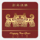 Square sticker with greeting in Chinese + golden papercut of two dogs and stylised earth between them: 2018 is Earth year of the Dog. Matching greeting card and more... . Perfect for Chinese New Year of The Dog 2018 or Birthday (people born in dog year). -------- "The Dog (狗) is one of the 12-year cycle of animals which appear in the Chinese zodiac related to the Chinese calendar. The Year of the Dog is associated with the Earthly Branch symbol 戌. The character 狗 refers to the actual animal while 戌 refers to the zodiac animal. (...) People born within these date ranges can be said to have been born in the "Year of the Dog", while also bearing the following elemental sign: