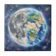 Earth & Moon Watercolor Galaxy Celestial Design Ceramic Tile
