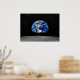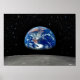 This is a composition photo of the Earth on a bright starfield, with the moon in the foreground