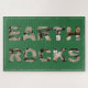 A stone wall provides the "EARTH ROCKS" text with an "earthy" green background. Accented with a thin rock border.