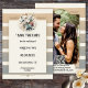 Wedding Save the Date card featuring an elegant striped design in pastel earth tones. A bouquet of succulents and cotton with wheat adds earth energy. On the back is your custom photo with QR code template.