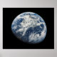 A striking view from the Apollo 8 spacecraft showing nearly the entire Western Hemisphere, from the mouth of the St. Lawrence River, including nearby Newfoundland, extending to Tierra del Fuego at the southern tip of South America. Central America is clearly outlined. Nearly all of South America is covered by clouds, except the high Andes Mountain chain along the west coast. A small portion of the bulge of West Africa shows along the sunset terminator.