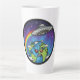 Vibrant cartoon design of an angry Earth confronting a UFO under a cosmic rainbow sky. Playful and bold illustration blending humor, space fantasy, and environmental attitude in a colorful, eye-catching composition.