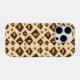 A refined geometric pattern featuring brown and white squares, diamonds, and hexagons on a warm beige background.