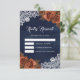 Earthy Dusty Terracotta Rose Navy Blue Wedding RSVP Card