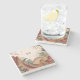 The coasters are gorgeous, a quality feel and heavy weight. They look like a precious archeological find. A rustic stone juxtaposed with a modern floral black and white print. I like the way the print goes slightly imperfect on the cut stone edges giving them a kind-of natural beauty.